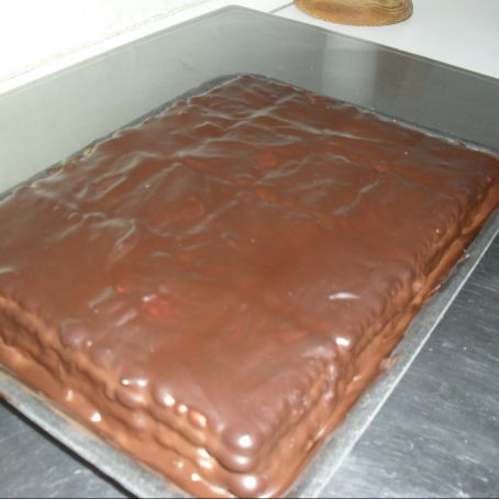 Seguir hasta que se acabe la crema y terminar cubriéndola con chocolate (dejar suficiente para cubrirla totalmente).
