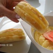 Ponemos la leche ya preparada con anterioridad,en un plato ondo y remojamos en la leche.