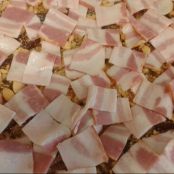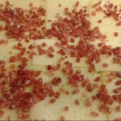 Terminamos colocando el bacon cortado al que le hemos quitado los bordes.