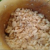 Ponemos las almendras en un mortero y las picamos. Deben quedar los trozos irregulares para darle textura a la empanada.