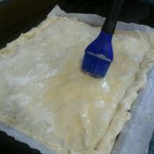 Pinchamos con un tenedor para que no suba el hojaldre y pintamos con un huevo batido.