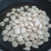 Freímos las almendras en aceite de girasol y las ponemos sobre papel de cocina para que no tengan nada de grasa.