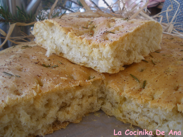 La focaccia (focacha, ‘hogaza’ en italiano) es una especie de pan plano, cubierto con especias y otros productos alimenticios, se trata de un plato muy tradicional de la cocina italiana muy relacionado con la popular pizza.