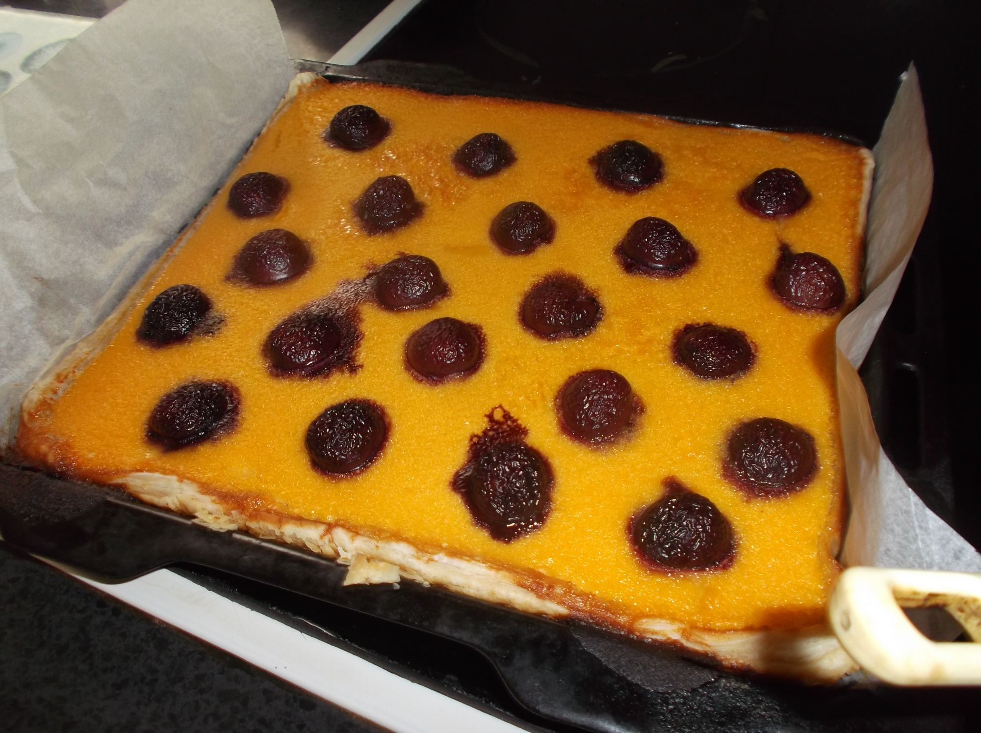 Tarta de calabaza con cerezas
