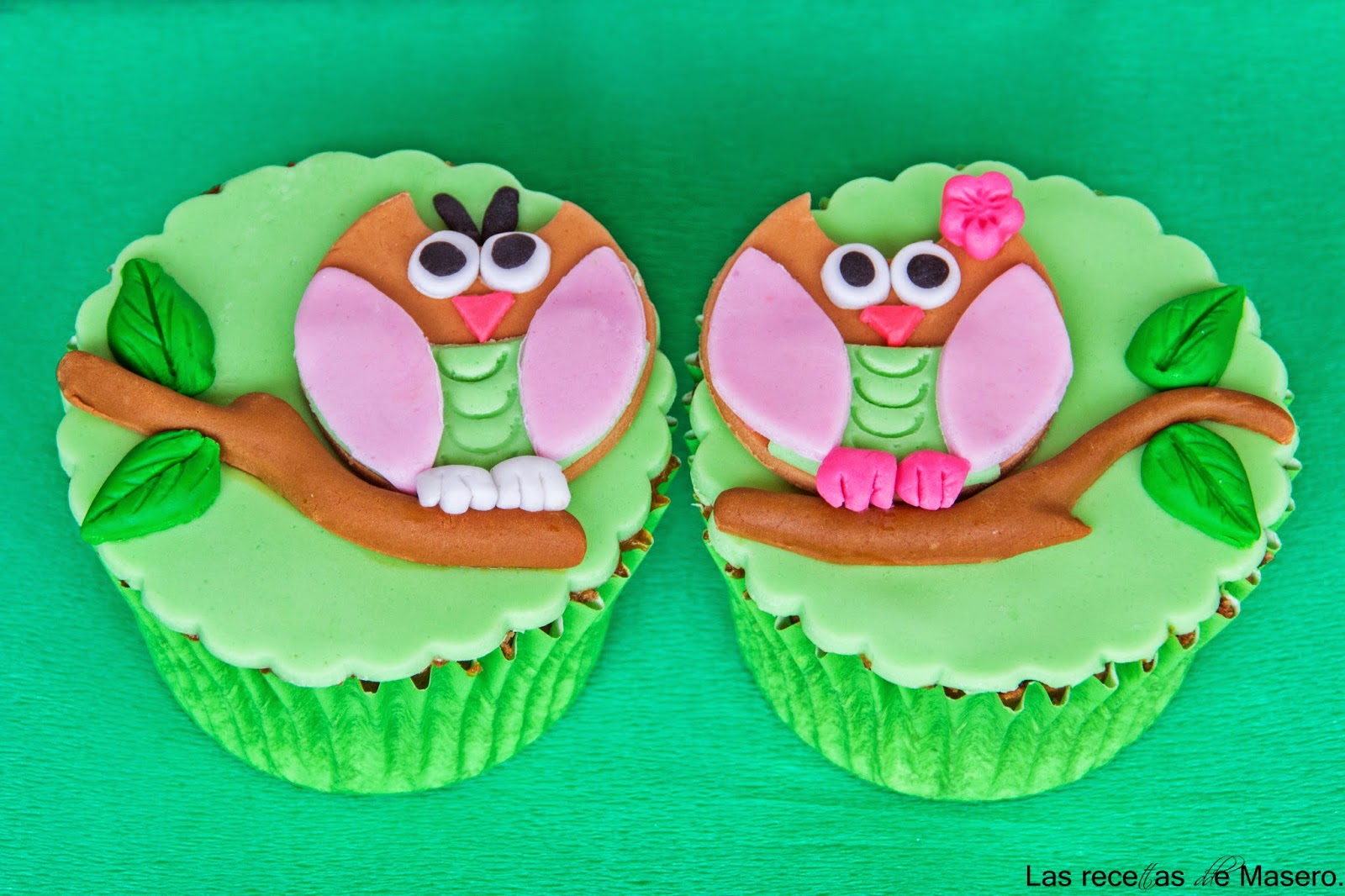 Para hacer el cuerpo de los búhos usé un cortapastas circular, para las alas usé una boquilla de manga pastelera y para los troncos y hojas usé esta plantilla que es como la de Wilton, pero la mía la compré en los chinos a un precio muy económico.