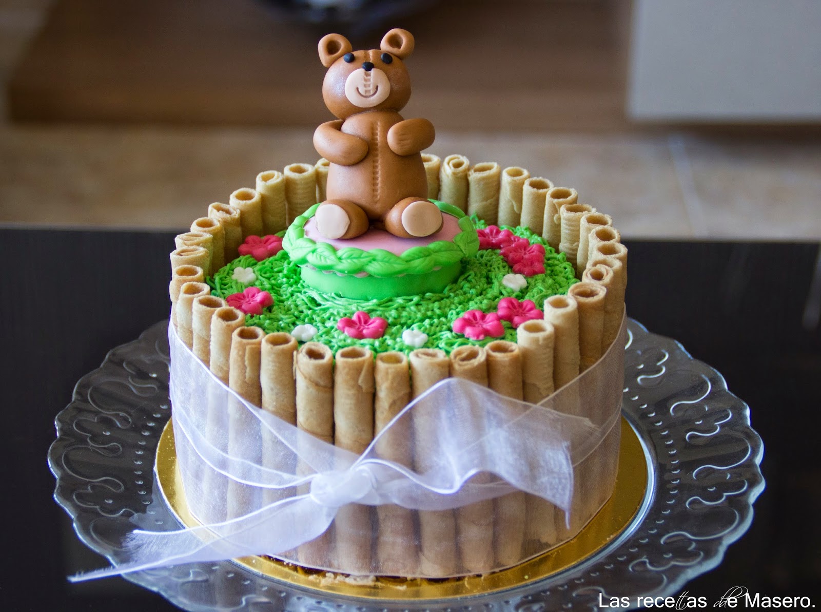 Hoy os voy a mostrar la tarta que le hice a Carolina, la hija de mi compañera Alicia, que hizo la comunión el pasado mes de junio. En un principio, pensé en hacerle una bonita tarta de fondant decorada con motivos de comunión, pero teniendo en cuenta que le gustan mucho los osos, al final me decanté por otro tipo de tarta, con un bonito oso de peluche como protagonista. He de decir que era la primera vez que modelaba figuras en fondant y que me aterraba ponerme a ello. Siempre he sido pésima en manualidades ( menos mal que a mi madre se le daban bien) y lo sigo siendo, pero la verdad, que me quedó un oso bastante aceptable para ser la primera vez.
