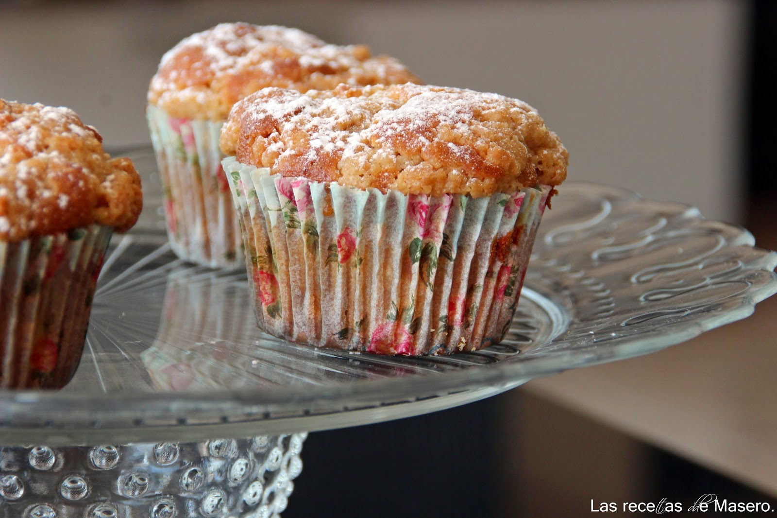 Los mini crumb cakes no son otra cosa que una especie de magdalena con unas migas en la superficie duritas, que le dan un toque riquísimo. Es como si comieras una magdalena y una galleta a la vez, para entendernos mejor. Digamos que si la receta fuese de Arguiñano se llamarían magdalenas con superficie de galleta, pero como es de Betty Crocker los llama “mini crumb cakes” que suena mejor.