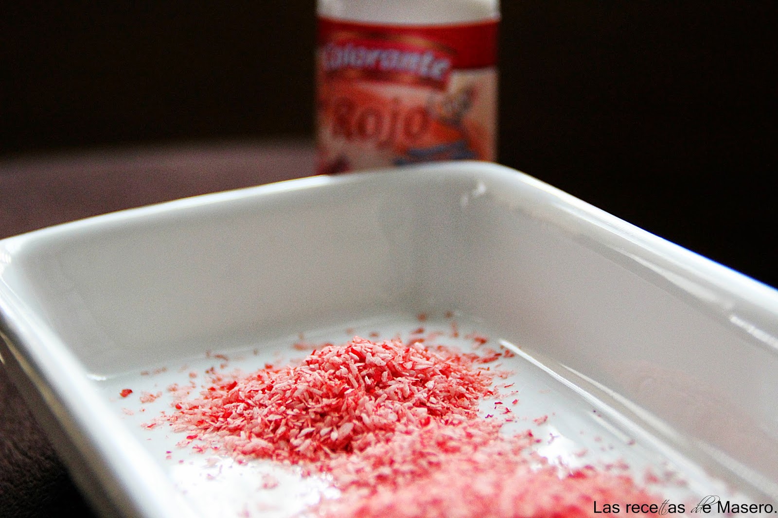 Mezclamos bien (masajeando con las manos), hasta que todo el coco esté bien teñido.