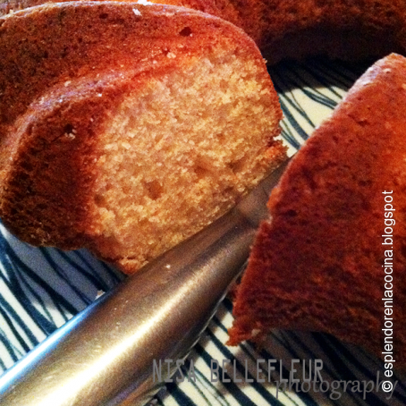 Vertemos nuestra masa en el molde que hayamos elegido, y que hayamos engrasado previamente; y horneamos de 35 a 40 minutos. Cuando lo saquemos del horno, lo dejamos reposar 10 minutos, y luego desmoldamos sobre una rejilla para que enfríe del todo.