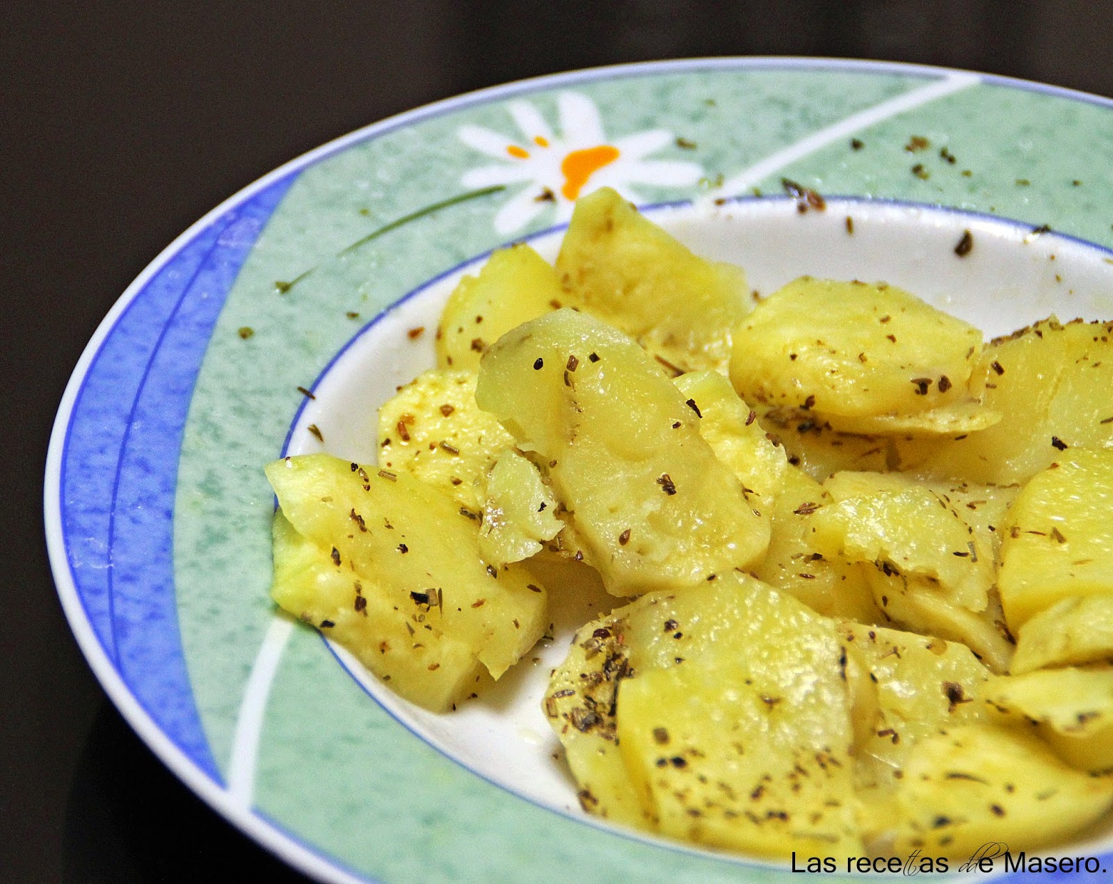 Unas deliciosas patatas a las hierbas provenzales cocinadas en el microondas. Son ideales como guarnición para cualquier plato, tienen bastante menos grasa que las fritas (cosa que viene muy bien para la cercana operación bikini) y están igual de ricas. ¿Qué más se puede pedir?