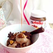 Batimos la Nutella con el azúcar hasta que esté cremosa y vamos añadiendo poco a poco la leche para que nos sea más fácil llegar a este punto.