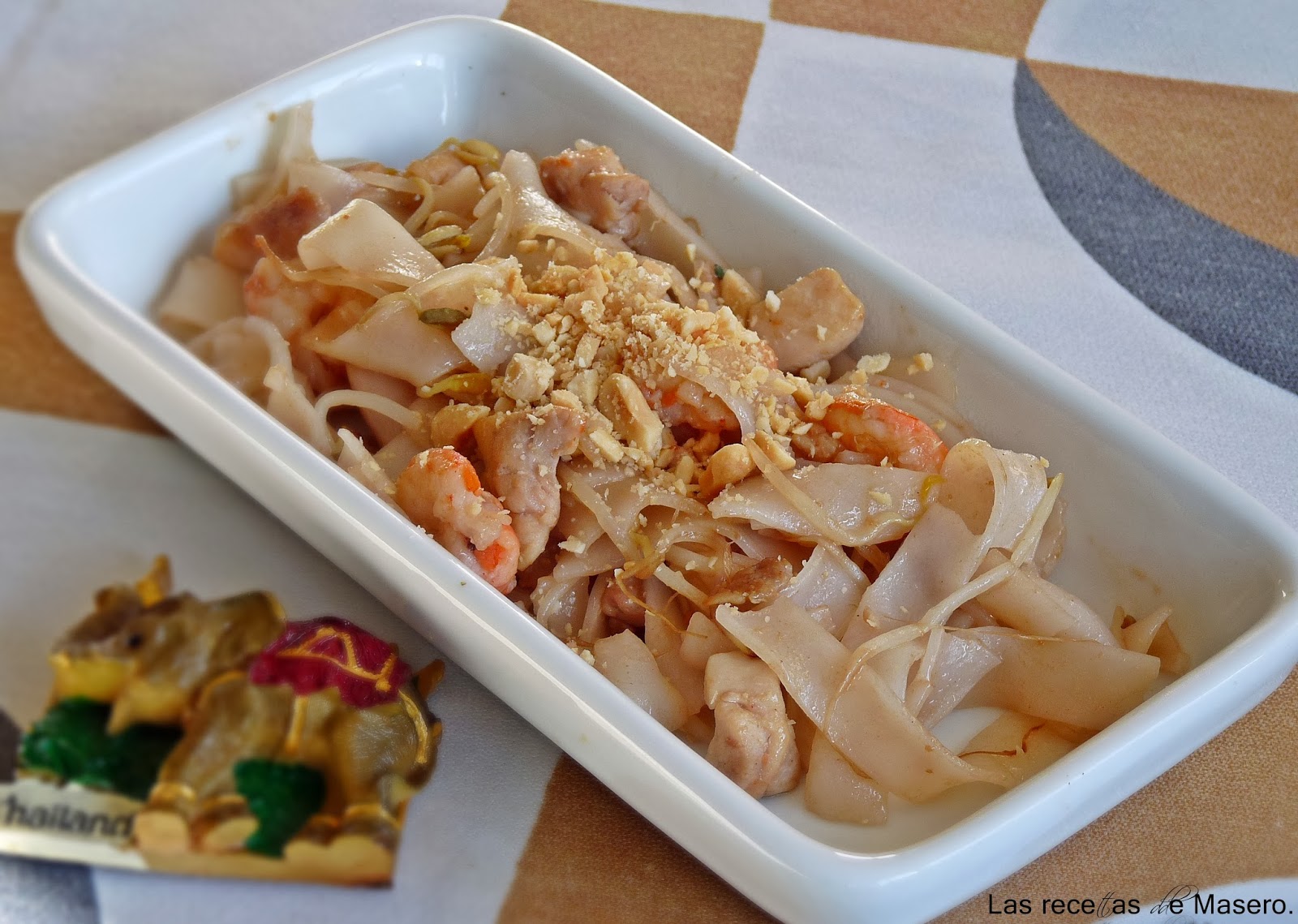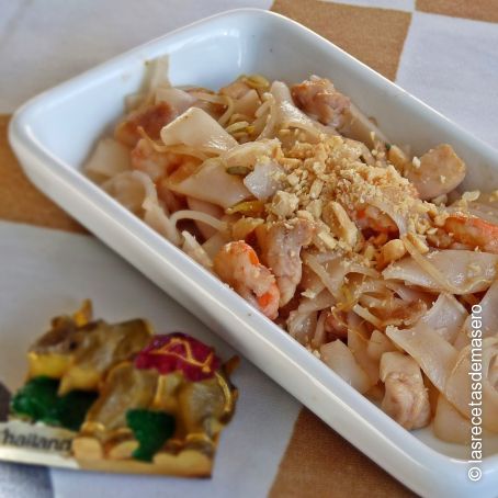 Pad thai de pollo y gambas (noodles fritos estilo tailandés)