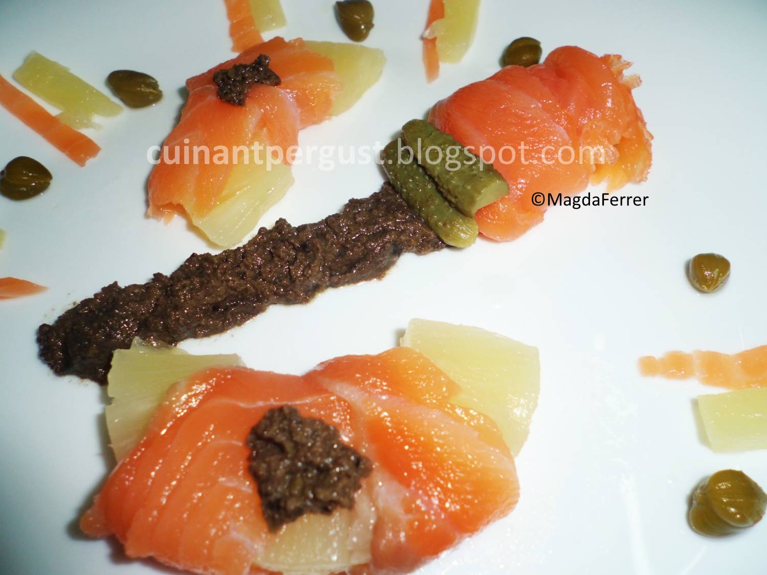 Salmón ahumado con piña y olivada