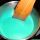 Cuando veamos que la leche condensada esta lista (esto lo veremos a ojo. Cuando ya no esté tan espesa y comience a no pegarse al fondo y las paredes del cazo), escurriremos la hoja de gelatina y la echaremos. Removeremos bien para que se deshaga y no queden grumos. Retiramos del fuego y echamos el colorante, removiendo para que se distribuya bien el color.