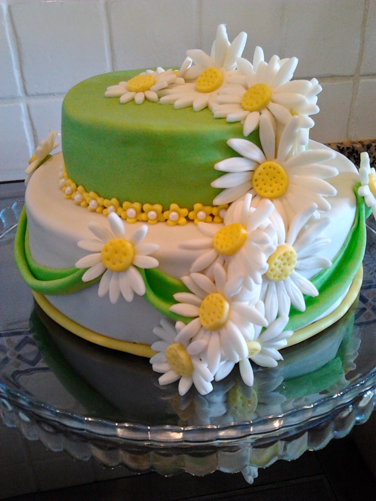 Com el cortador de eyector de margaritas, ir haciendo flores y colocando sobre la tarta pegadas com agua o una mezcla de agua y CMC.