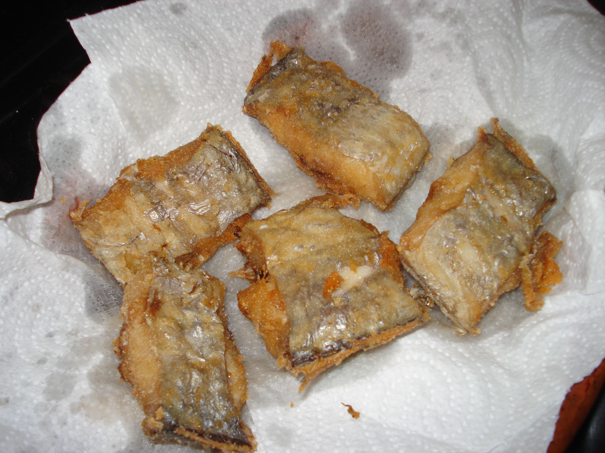 Pasar los trozos por harina, quitando el exceso y freír en aceite caliente hasta queden doraditas.
