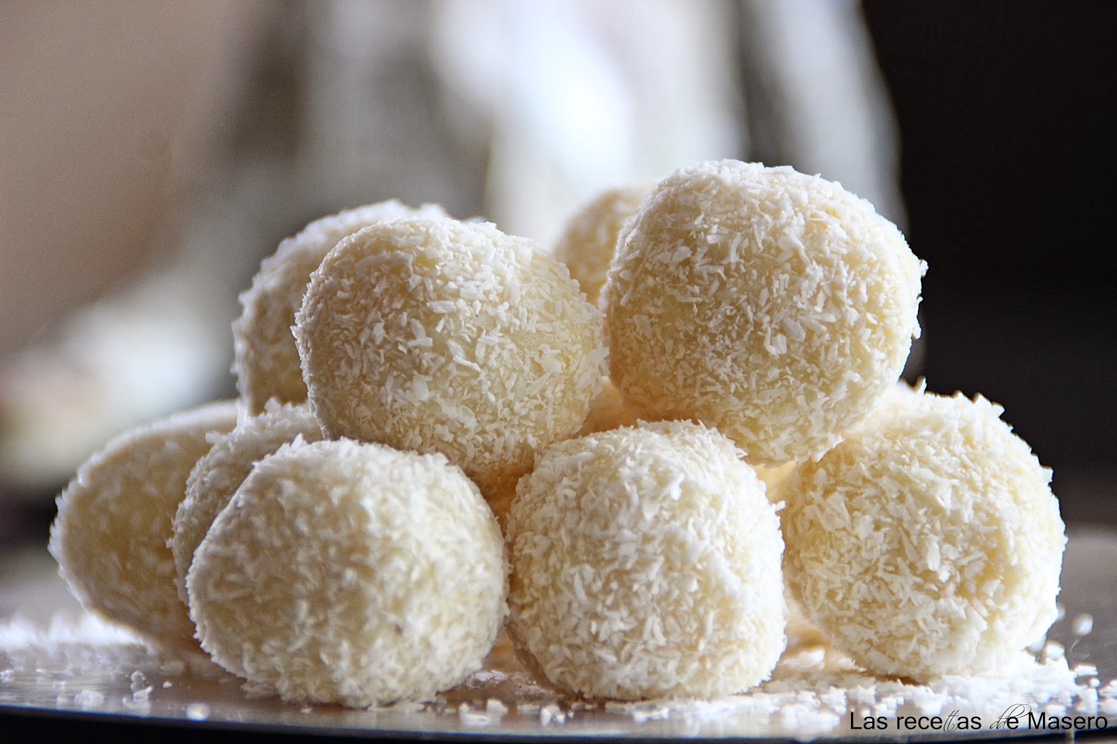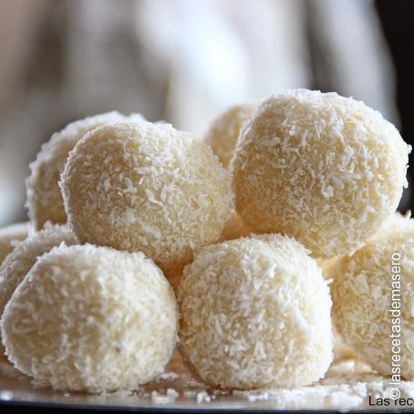Hacemos bolitas de tamaño similar con ayuda de una cucharada y pasamos por coco rallado.