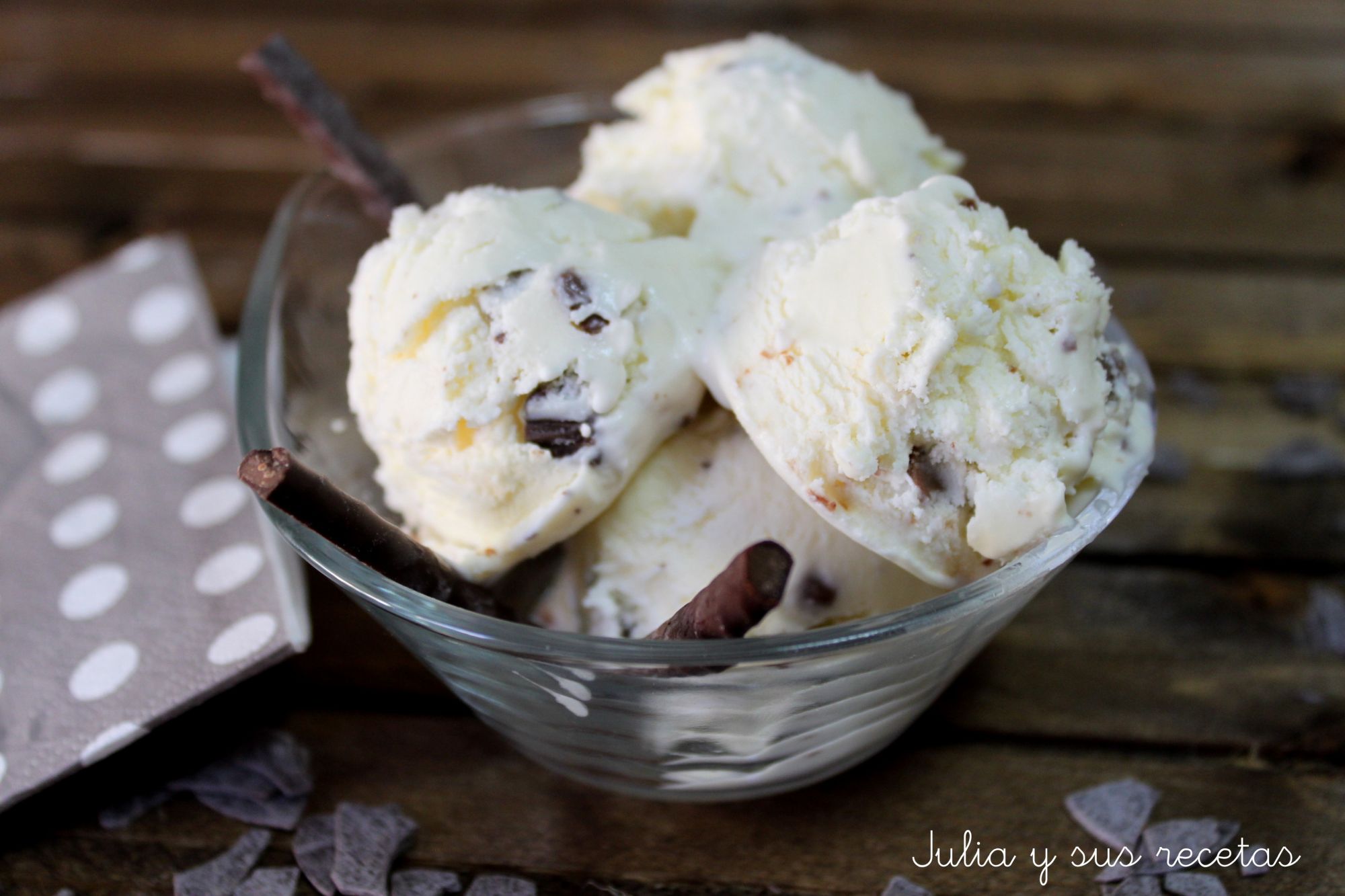 Dejamos que se haga 30-40 minutos. Si no tenemos heladera le echamos el chocolate troceado y lo ponemos en un recipiente en el congelador y vamos batiéndolo cada 1/2 hora, repetimos el batido unas 4 veces. Luego lo dejamos estar en el congelador.