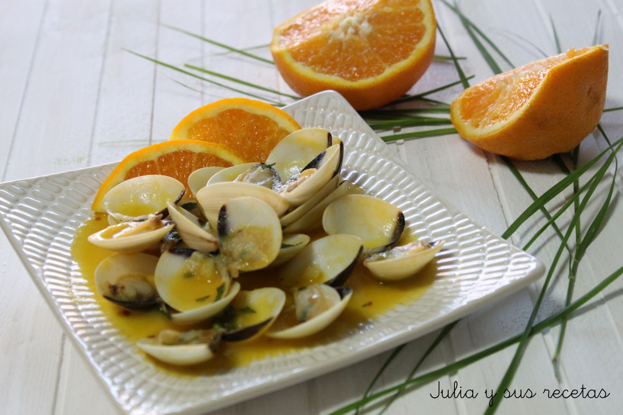 Ponemos las almejas en agua con sal durante 1 hora para que suelte la arena. Las escurrimos y las lavamos bien.