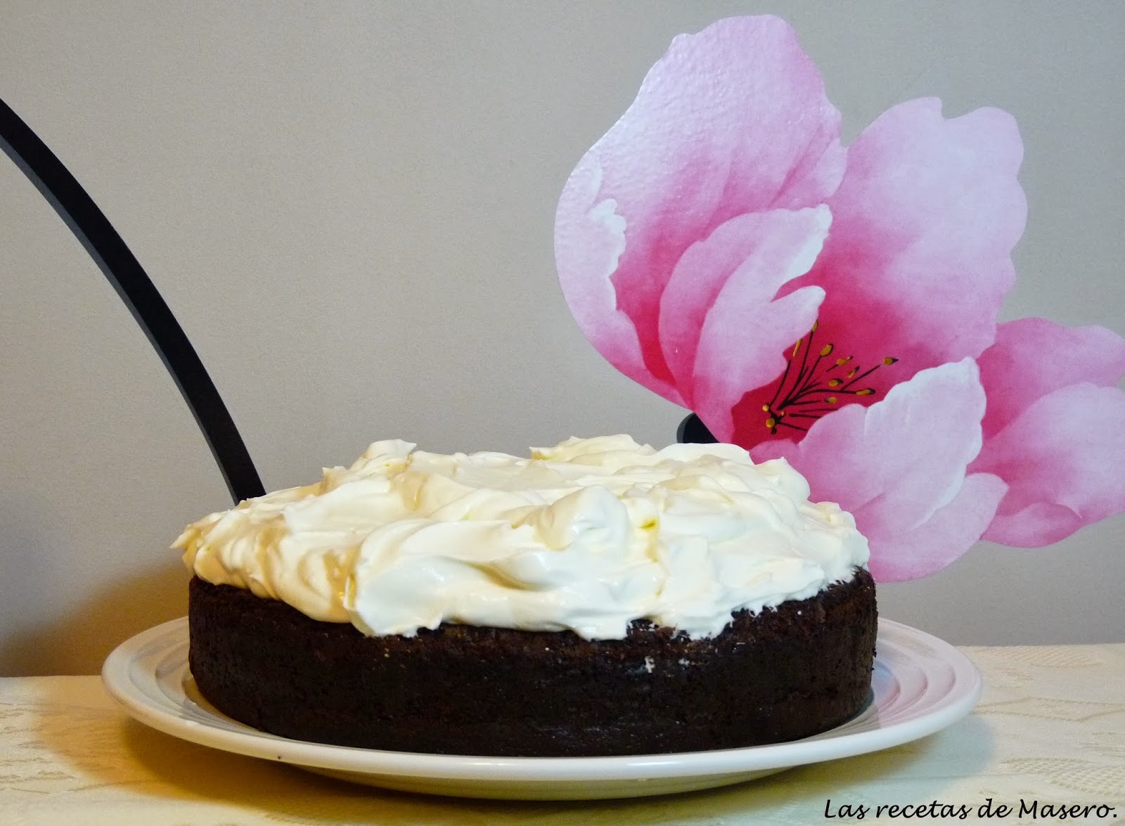 tarta elaborada con cerveza negra fue la elegida.Si, si has oído bien con cerveza negra y la combinación con cacao y frosting de queso hacen que sea una auténtica delicia. A pesar de que a mi marido no le gusta la cerveza (ni a mí tampoco) decidí poner toda la carne en el asador y arriesgarme y he de decir que fue un verdadero éxito. A él le gusto muchísimo, me felicito incluso(a pesar de no ser mi cumpleañosJ). Tiene un sabor y una textura maravillosa, a pesar de ser de cacao tiene un sabor que no es fuerte, como la típica tarta empalagosa de chocolate. A mis invitados, incluso a los que no les motiva el chocolate, les encantó.