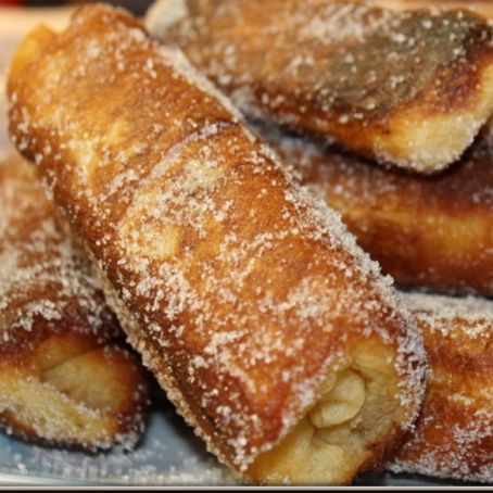 Hacer las formas con la masa, poner en el centro un poco de crema y enrollar cerrando para que no se salga. Freir con mucho aceite, escurrir y poner azúcar glass por encima.