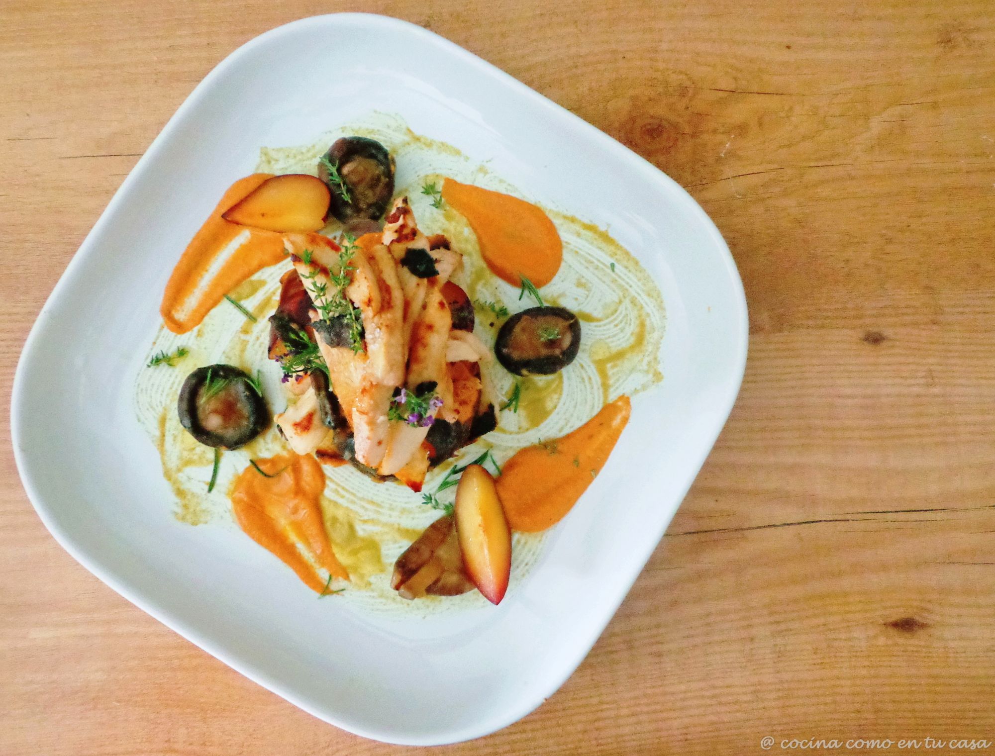Sobre el fondo del plato pincelamos con la crema de trigueros (al gusto del chef!!!).