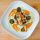Pollo callejero marinado a baja temperatura con guiso de setas sithake, pinceladas de trigueros y pesto de nueces