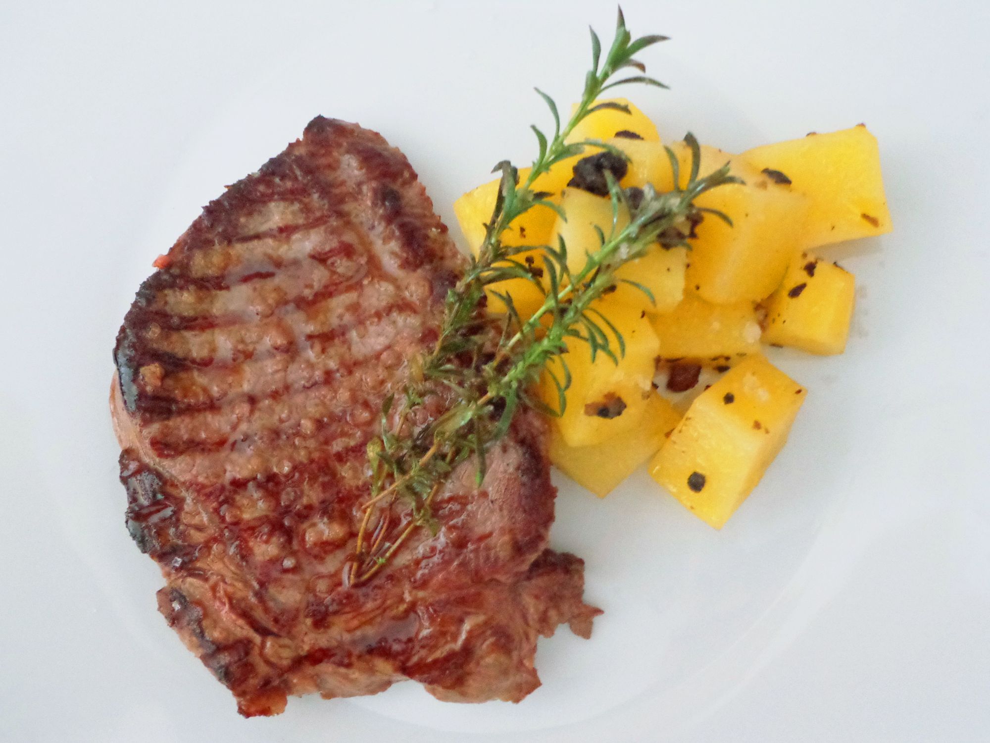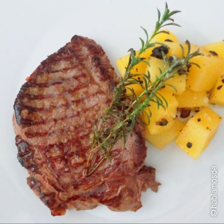 4. Retirar del fuego y rociar los medallones con el jugo obtenido para aromatizar los medallones a romero.