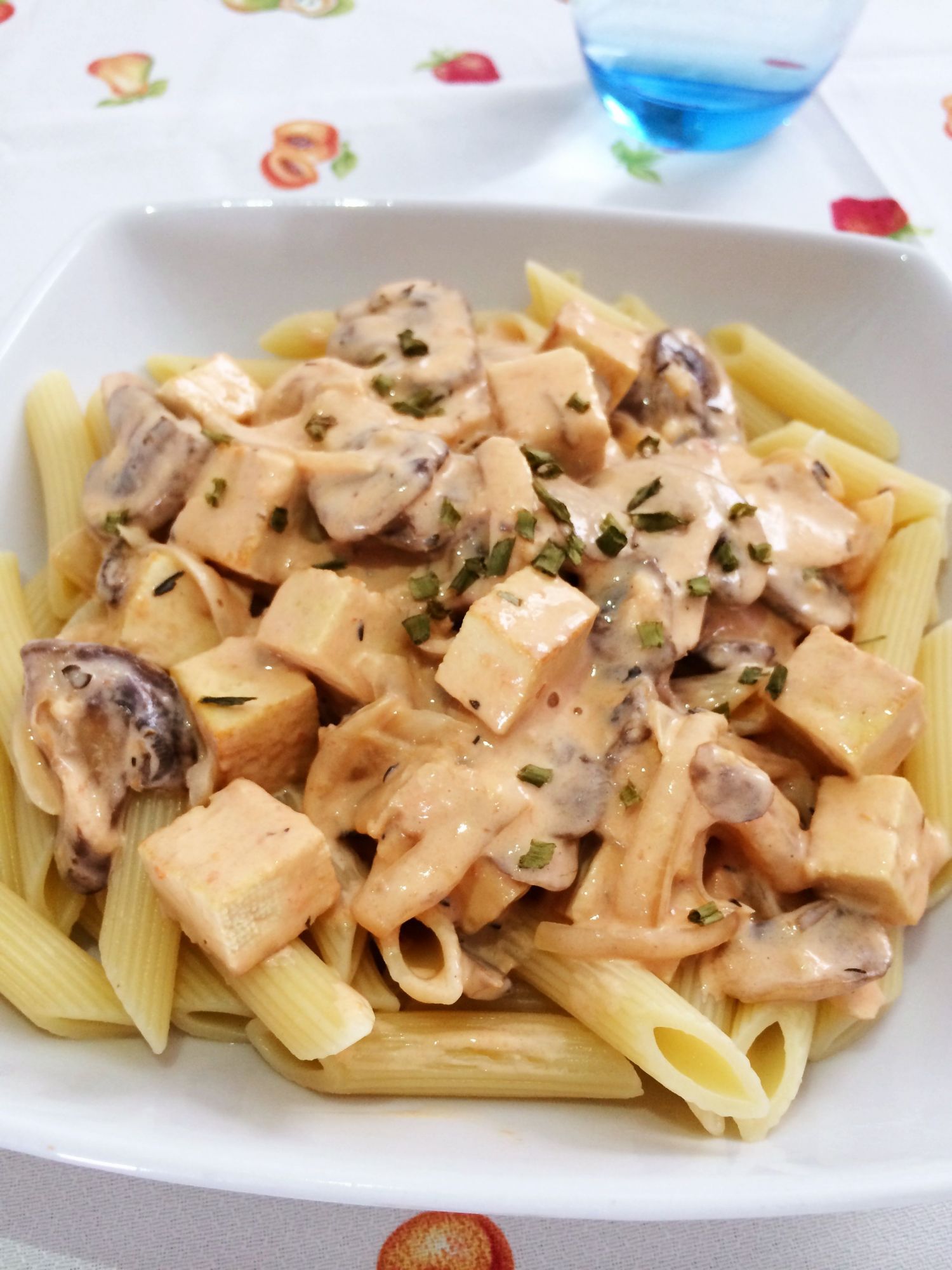 Me encanta la salsa stroganoff, con ese sabor a vino y champiñones, tan cremosa... así que la primera vez que vi esta receta en mi libro de cocina vegetariana, me lancé a probarla y el resultado fue bastante desastroso! Todavía no tenía muy claro como sustituir la crema vegetariana que Isa preparaba con anacardos y caldo de verduras, y el resultado aunque sabroso, no quedo nada cremoso. Esta segunda vez si que he conseguido la textura y el sabor, mucho más logrado... Y ahora si que puedo publicarla!!