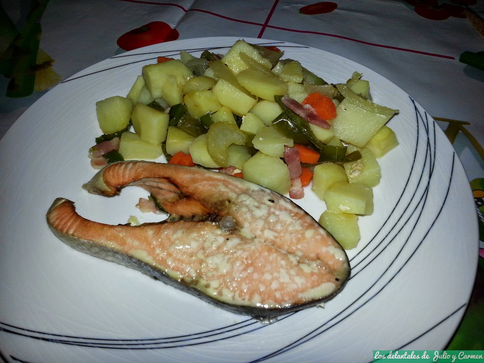 Salmón con patatas a la cerveza