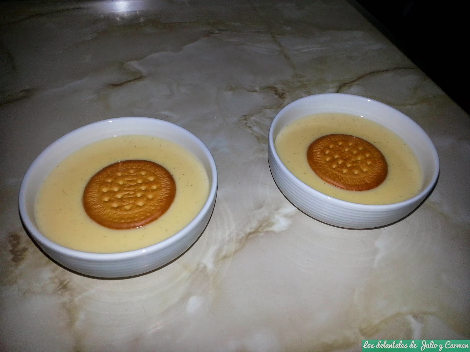 Colocaremos una galleta encima y dejamos enfriar un poco. Cuando haya perdido algo de temperatura, meteremos a la nevera para que se enfríen por completo.
