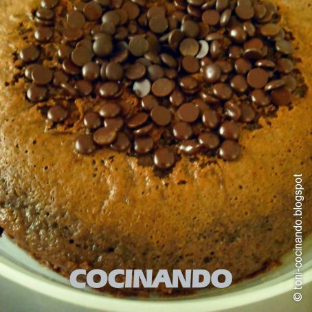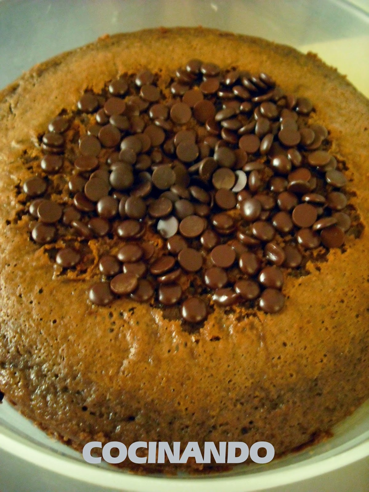Desmoldamos el bizcocho y lo decoramos con las pepitas de chocolate.
