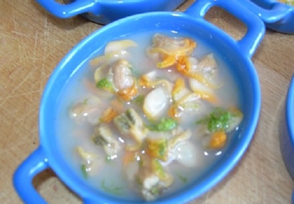 Aperitivo de berberechos en su jugo natural con aroma de lima y jengibre fresco