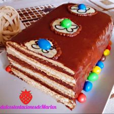 * Se puede hacer más cantidad de una de las natillas para poder cubrir toda la tarta, pero a mí me gusta más que se vean las capas a simple vista. Si os apetece cubrirla entera, sólo hay que aumentar los ingredientes una mitad más.