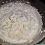 Mientras esperamos, prepararemos la cobertura. Batiremos los brick de nata, y cuando comience a estar cremoso, pero aun liquido (con unos segundos batiendo es suficiente), iremos echando las cucharadas de queso crema sin dejar de batir. Una vez que el queso este bien integrado, vertemos el azúcar poco a poco y continuamos batiendo hasta que este montada. El punto exacto de la nata es cuando las varillas, comiencen a crear surcos amarillentos (ver la foto) y tenga una buena consistencia. Tened cuidado en este punto, ya que si continuamos batiendo, se nos cortará.