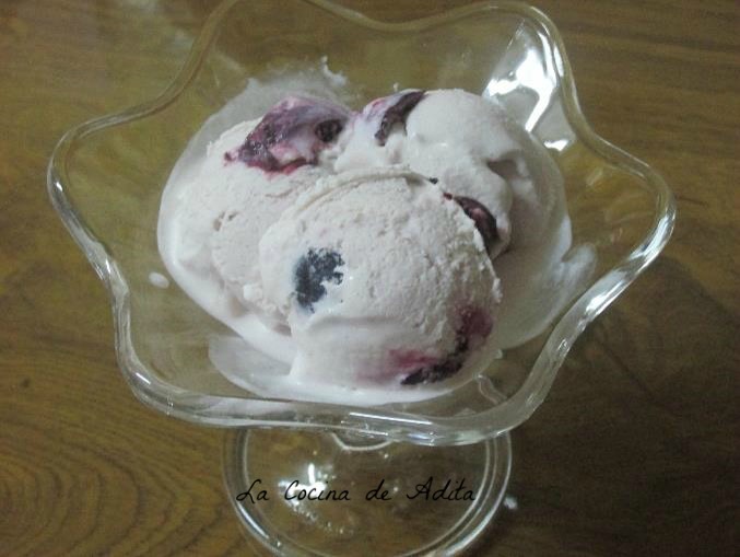 Si esta crema la dejamos en la nevera unas hora, se nos va hacer antes el helado, se lo echamos a la heladora y cuando este casi mantecado le echamos por el bocal las cerezas con el Kirsch dejamos unos minutos para que se repartan por todo el helado.