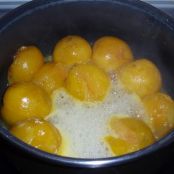 Lavar y secar muy bien la fruta , la colocamos entera (con piel y hueso) en una cacerola, con el azúcar, la cucharadita de zumo de limón lo llevamos a ebullición , bajamos el fuego .