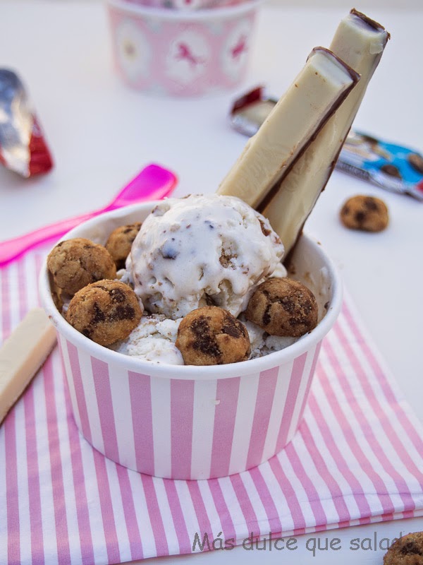 Incorporar las galletas y las barritas de KitKat y guardar en el congelador hasta el momento de servir.