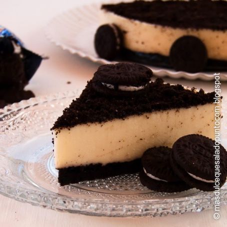 Una vez cuajada, triturar las tres galletas sin el relleno y espolvorear la superficie. Se puede adornar con galletas oreo o minioreo.