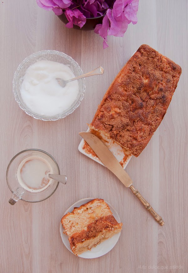 Verter el resto de la mezcla y cubrir con las manzanas y el azúcar con canela restante.