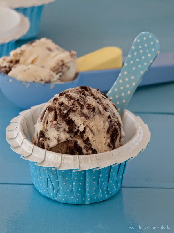 Para hacer sin heladera, una vez que tenemos el helado, y antes de incorporar las galletas, introducir en el congelador e ir removiendo cada media hora durante un par de horas. La última vez que lo mováis,entonces es cuando hay que incorporar las galletas troceadas.
