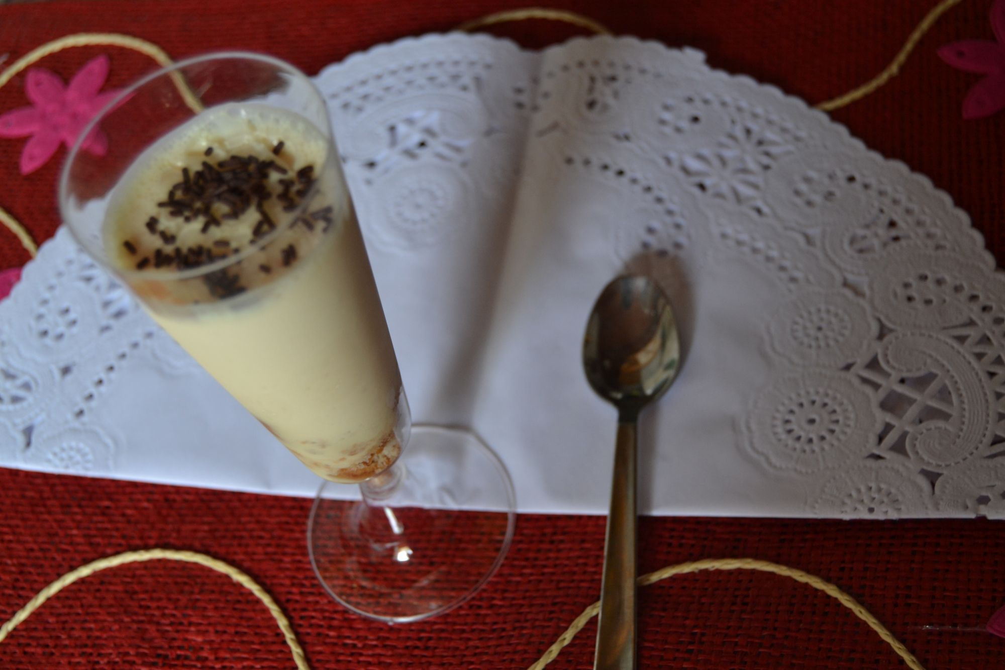 Machacamos las galletas y las ponemos en el fondo de las copas para luego verter con cuidado la mezcla anterior