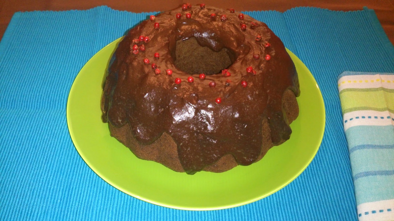 Bundt cake de patata y chocolate especiado con pimienta rosa