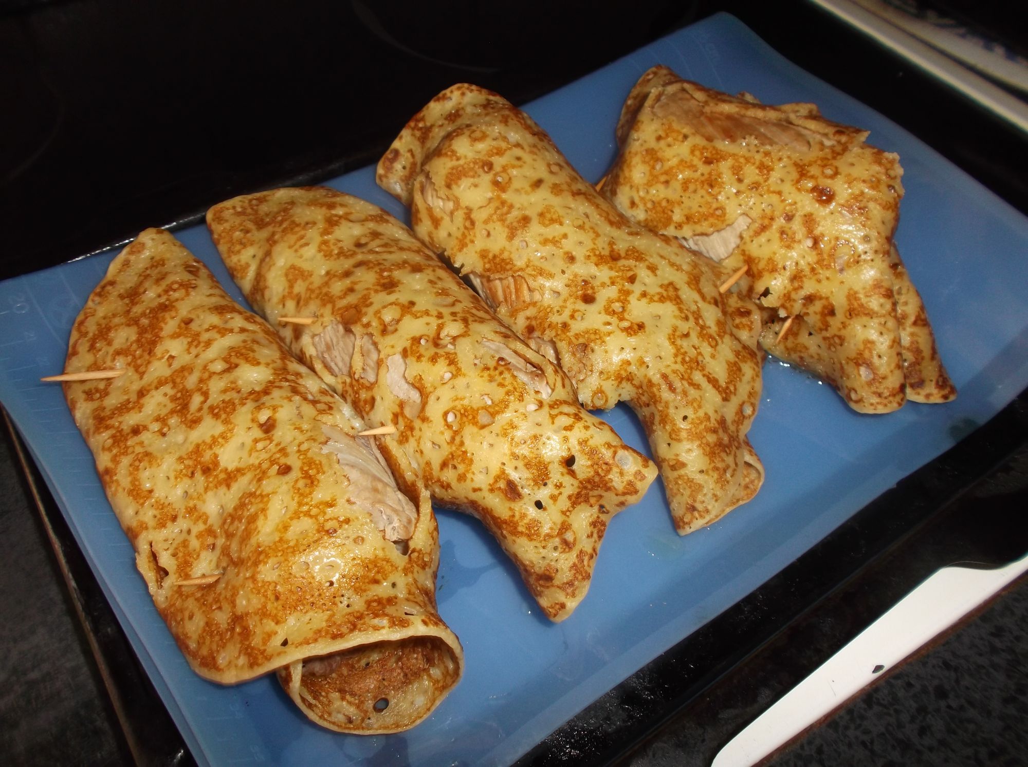 Realmente quizás quedaría más rico especiando la carne, pero como el sabor del secreto me encanta, no he querido adulterarlo más que con un poquito de sal y unos crepes congelados que compre el otro día, que ciertamente están muy logrados.