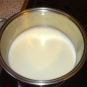 En una cazuela con capacidad de 2 litros, calentamos 1/2 litro de leche (Asturiana) a fuego lento.