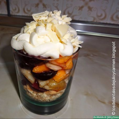 Mezcla de texturas diferentes en un postre con frutas que hará las delicias de todos.