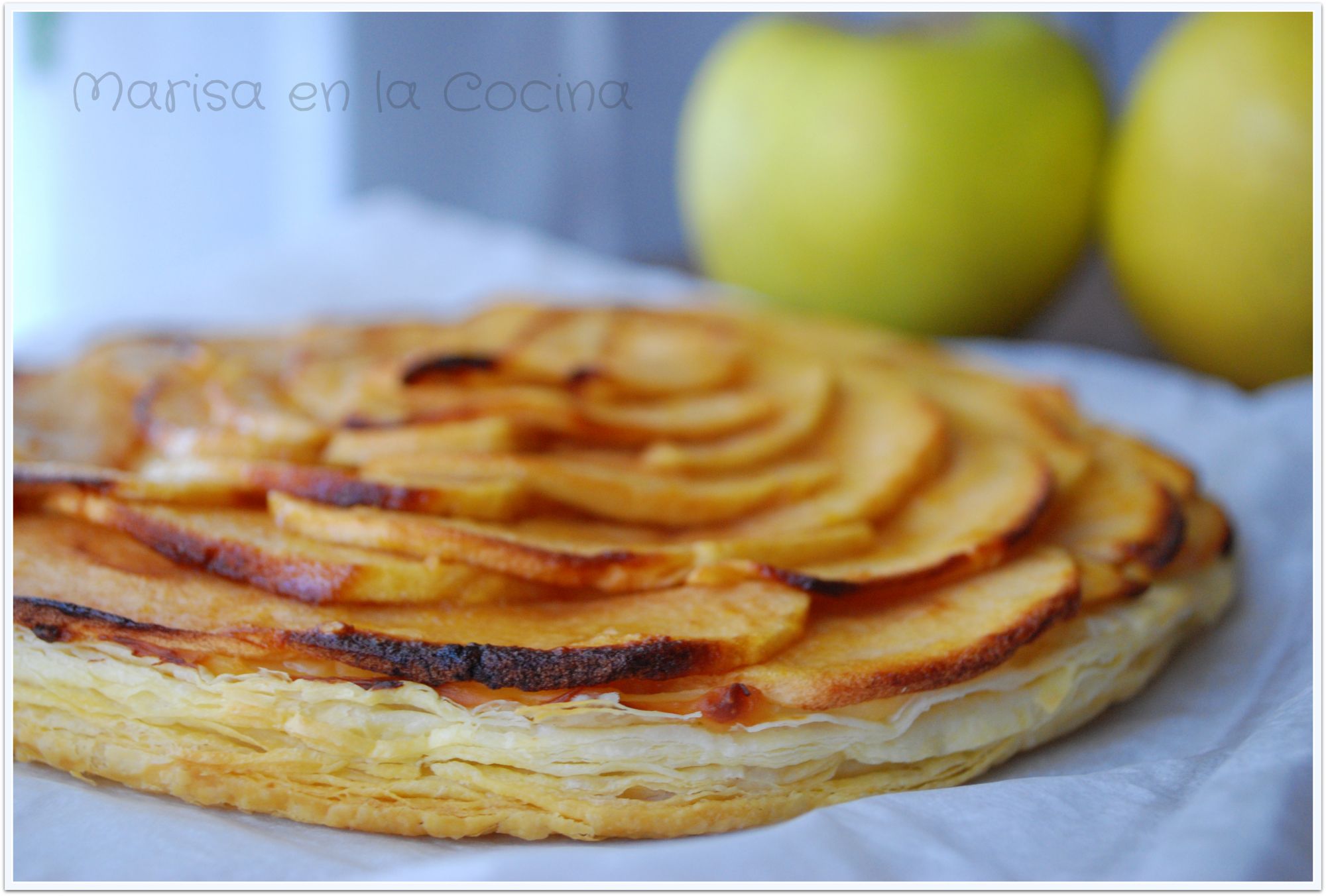 Saca la masa de hojaldre prehorneada y extiende la crema pastelera sobre la tartaleta de hojaldre. Disponer los gajos de manzana reservados, pinta con la mermelada de albaricoque diluida en una cucharada de agua y vuelve a meter en el horno unos 20 minutos. Teniendo cuidado de que el hojaldre no se queme.
