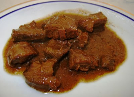Hervir la carne con la salsa y una guarnición de patatas fritas.