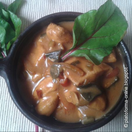 Dorar el pollo en aceite de oliva, junto a tiras de pimentón y cebollin, agregar la miel, seguir dorando un poco, agregar la cerveza, el peperoncino, la mostaza dijon, soya y pimienta.Si es necesario agregar 1 cucharada de harina o maicena diluida en un poquito de agua para espesar.