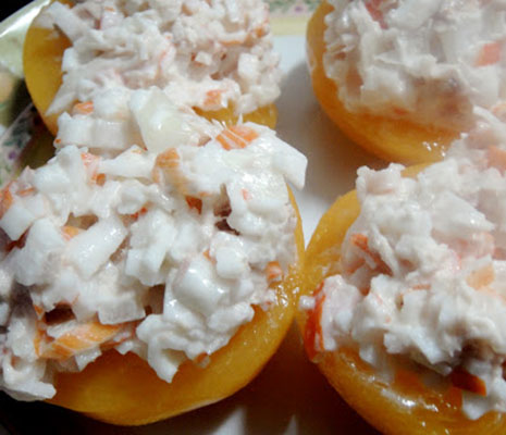 Mezclar muy bien y rellenar cada mitad de melocotón con una cucharada de la mezcla.